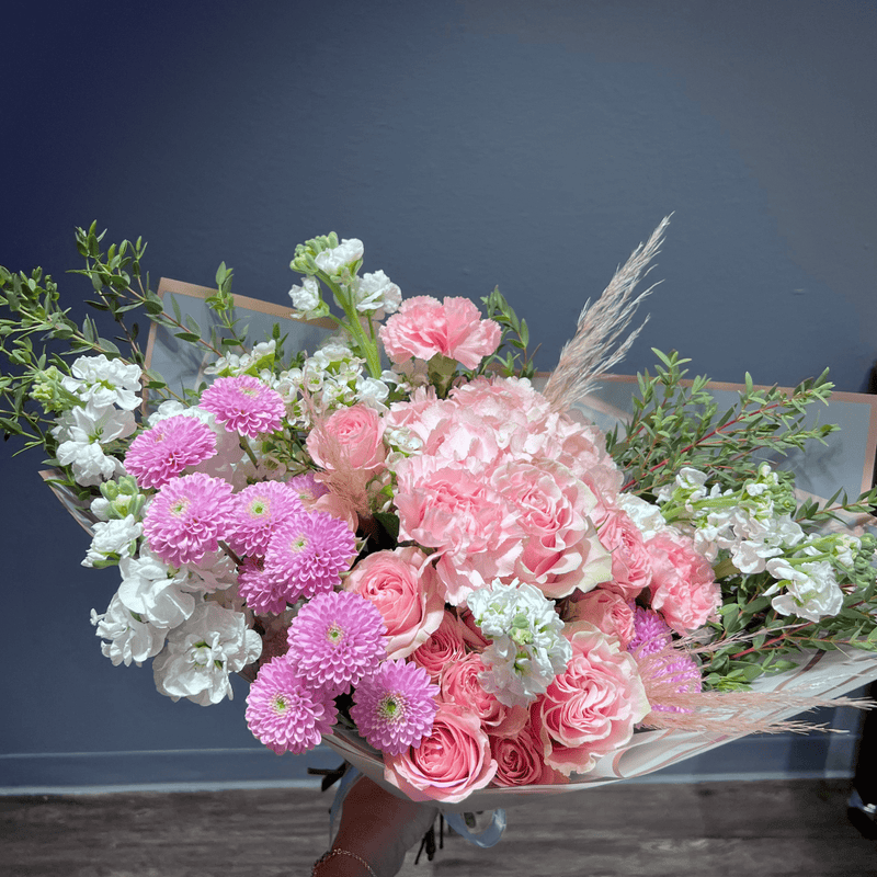 Roses, Hydrangea, Matthiola, Carnations and Eucalyptus