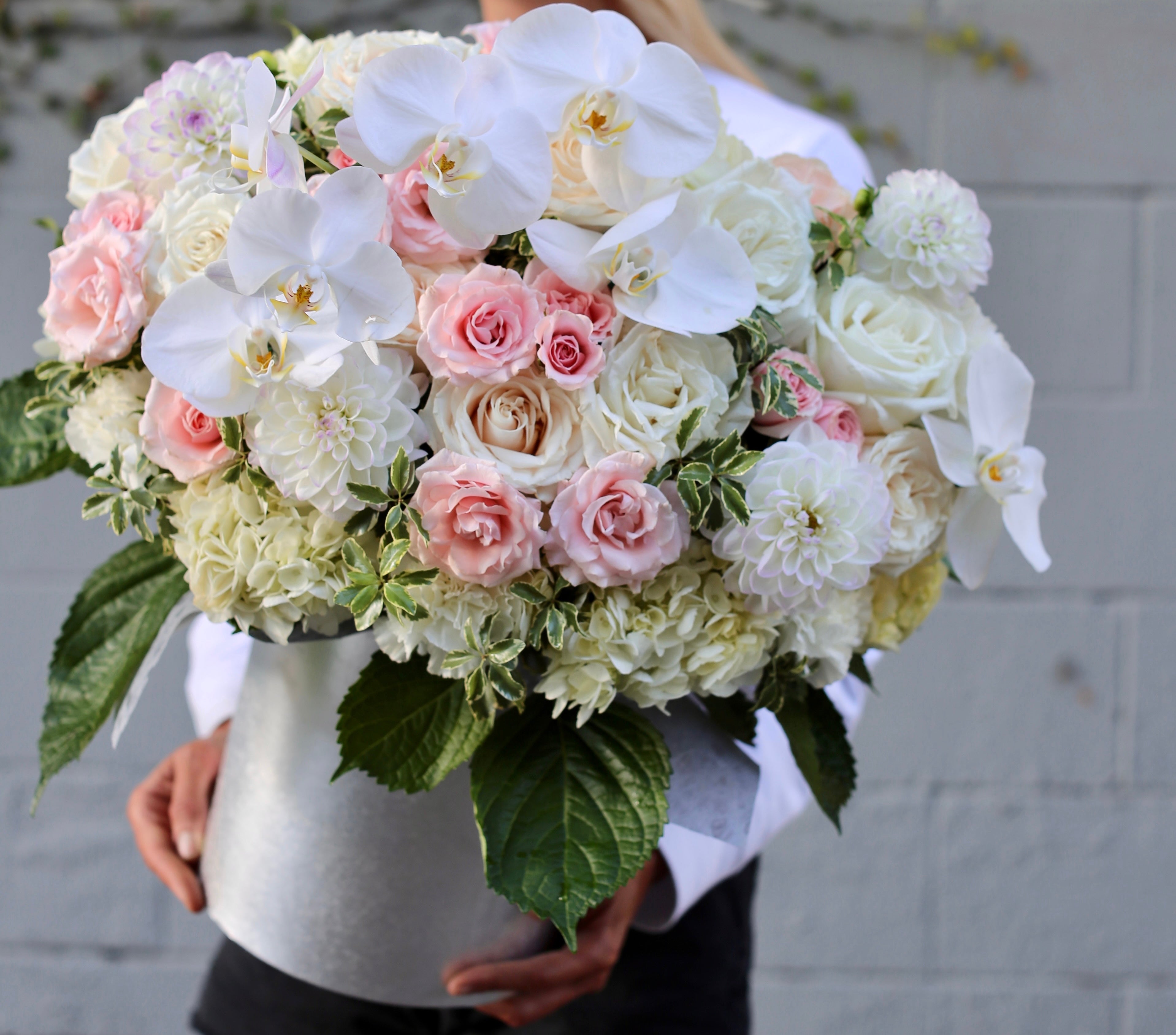 Roses, Orchids, Dahlias, Hydrangea and Greens. Size L