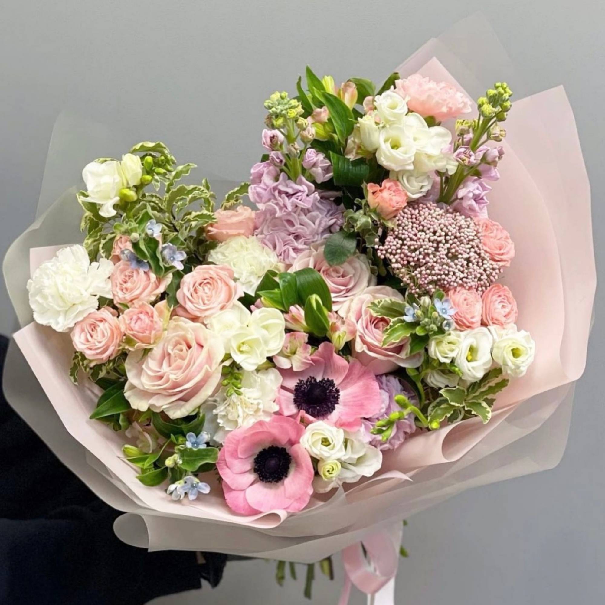 Roses, Anemones, Lisianthus, Matthiola, Italian Pittosporum