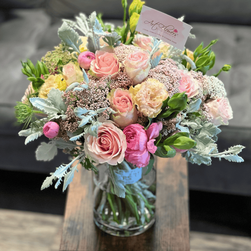 · Disclaimer · Product photos represent an overall theme or look which in some instances, cannot be replicated exactly. Although the actual arrangement may not precisely match the photo, the overall design direction will always be preserved. Seasonality, market conditions, and availability may cause substitutions of flowers, greenery and vases to occur. We will always ensure that the styling and color schematic match the imagery as close as we can and will only substitute items of equal or higher value.