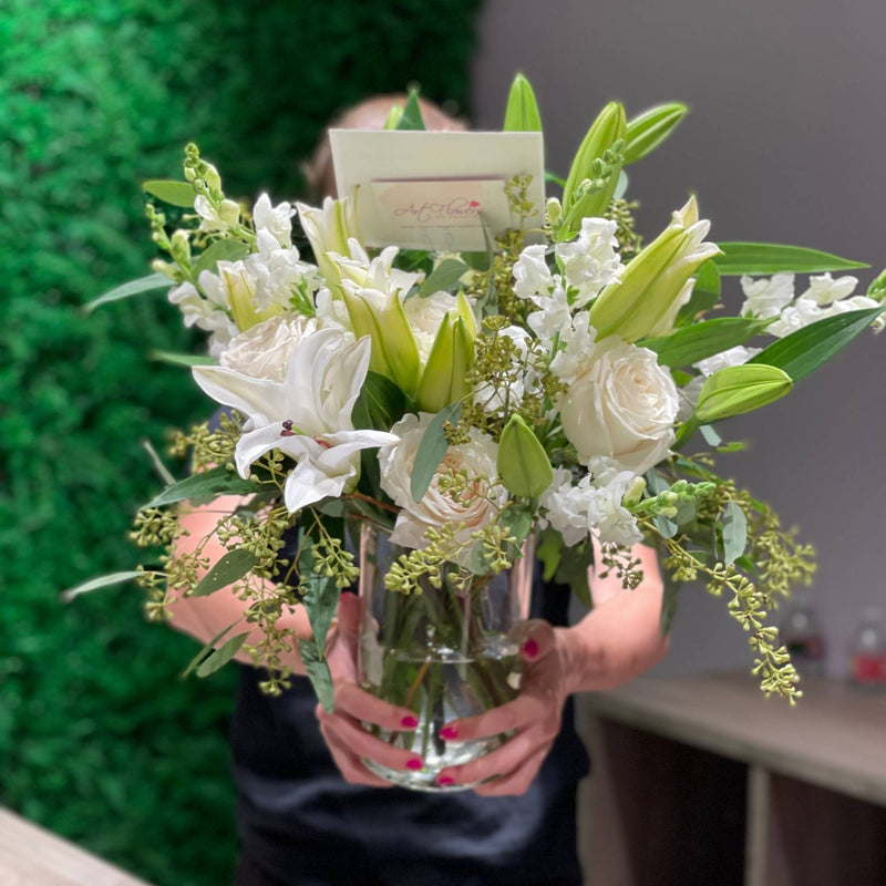 · Disclaimer · Product photos represent an overall theme or look which in some instances, cannot be replicated exactly. Although the actual arrangement may not precisely match the photo, the overall design direction will always be preserved. Seasonality, market conditions, and availability may cause substitutions of flowers, greenery and vases to occur. We will always ensure that the styling and color schematic match the imagery as close as we can and will only substitute items of equal or higher value.