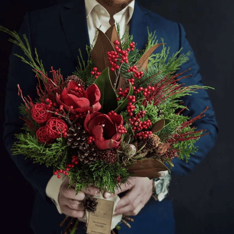 Red Flowers and Berries and Greens