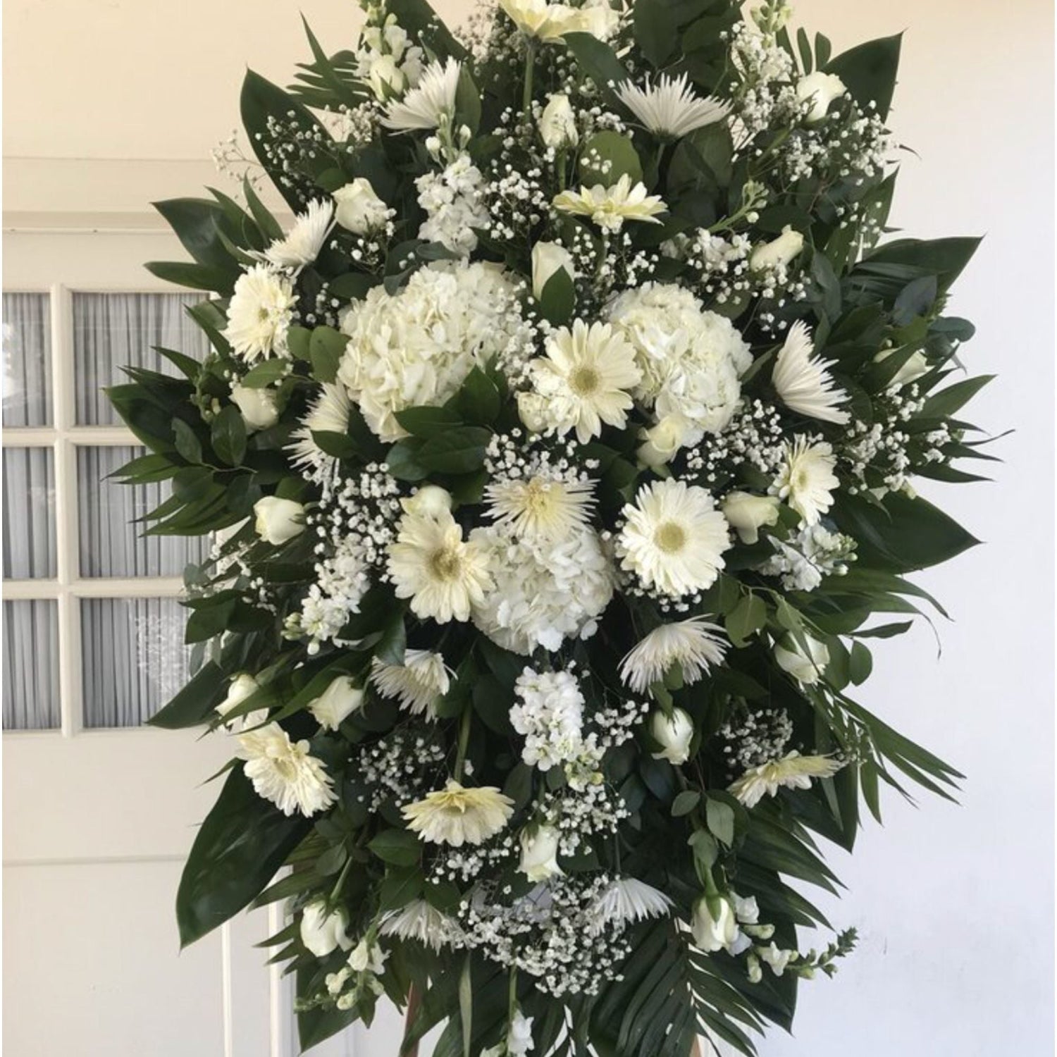 Honor a lifetime of faithful devotion with our beautiful standing sympathy arrangement.  It is a beautiful way to offer peace and comfort during a difficult time. You may request any colors pf flowers - call us (310) 817-0605