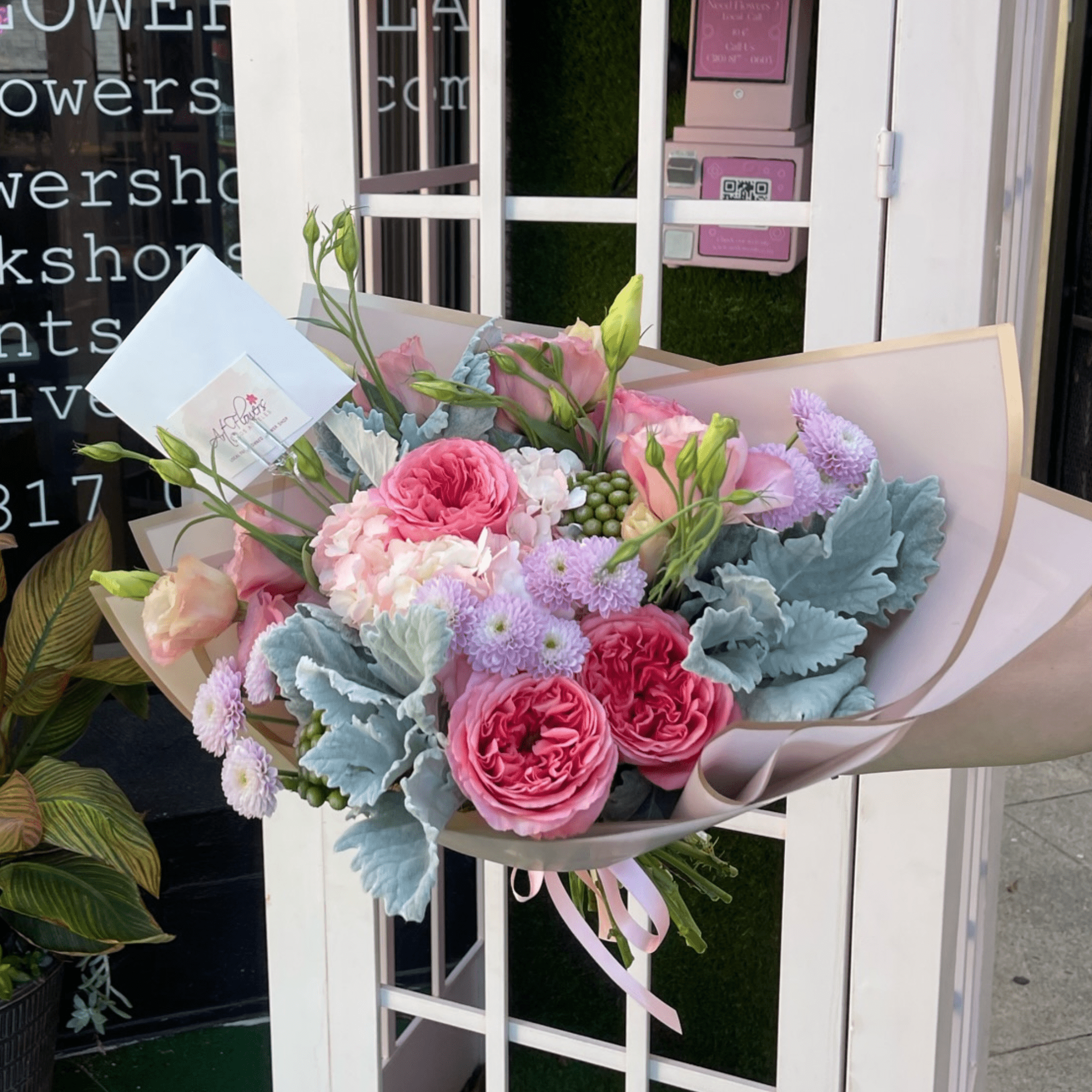 Roses, Hydrangea, Lisianthus, Dusty Miller and Flower Fillers