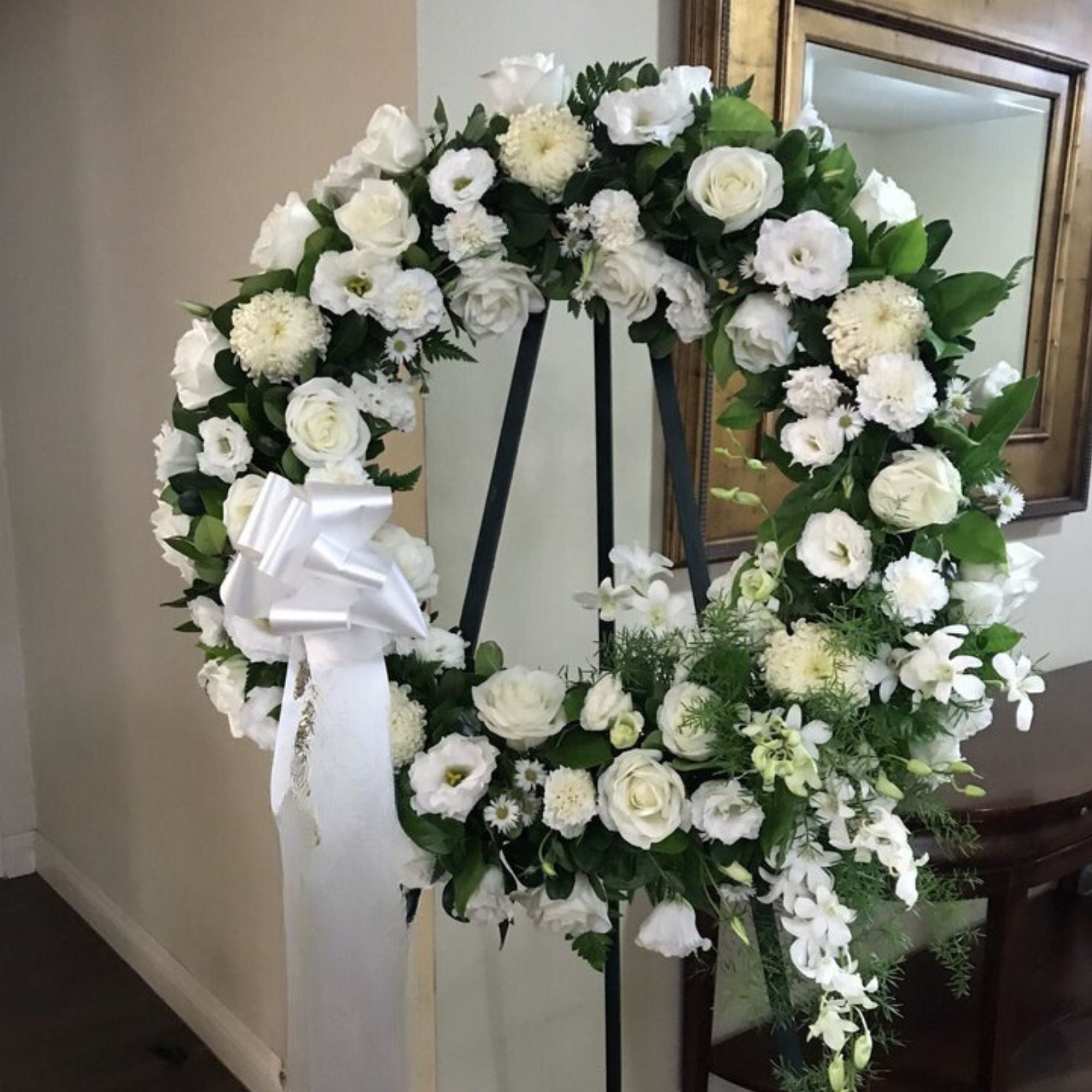 Honor a lifetime of faithful devotion with our beautiful standing sympathy arrangement.  It is a beautiful way to offer peace and comfort during a difficult time. You may request any colors pf flowers - call us (310) 817-0605